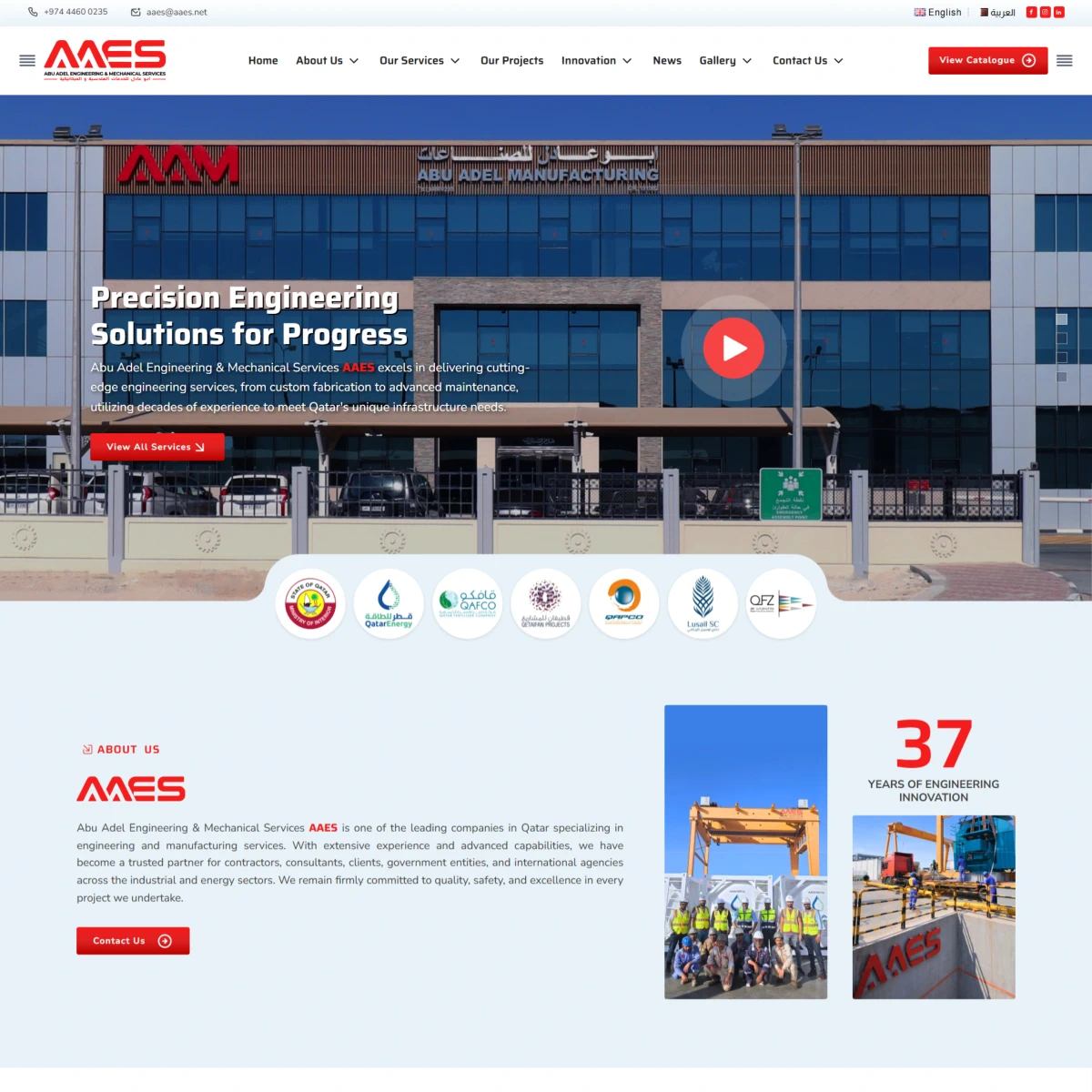 Designed and developed a corporate website for AA Engineering Services, showcasing engineering solutions, manufacturing, fabrication, control panels, contracting, and equipment supply in Qatar.